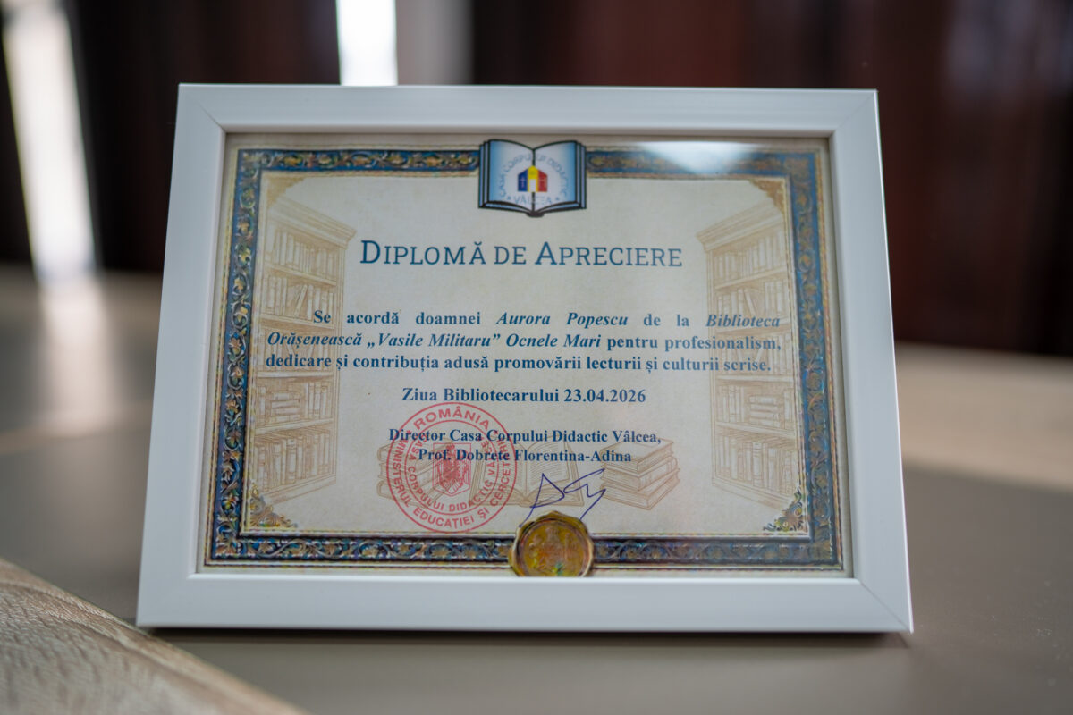 Finalul întâlnirii a fost dedicat colegilor care transformă zi de zi bibliotecile vâlcene în spații vii. Diplomele de merit acordate nu au fost doar o formalitate, ci un gest de mulțumire pentru munca adesea discretă, dar esențială, în educația comunităților noastre.